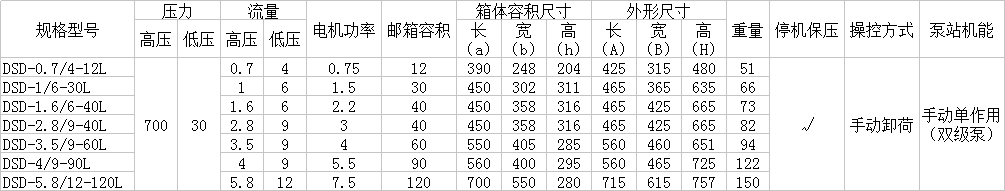 DSD選型參數(shù)表: