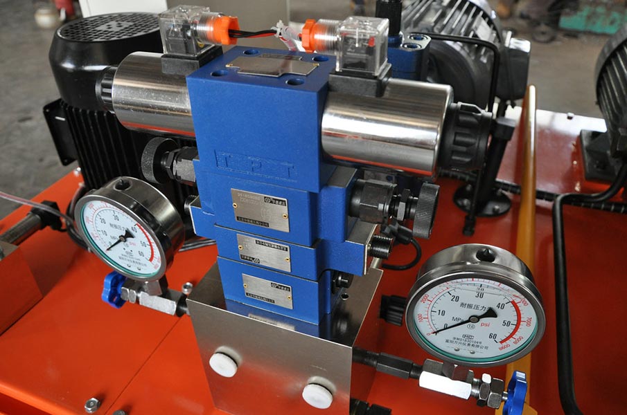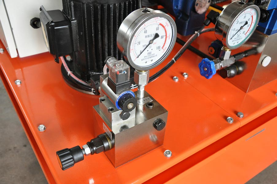 加載油缸控制部分,由多個溢流閥及單向閥組成