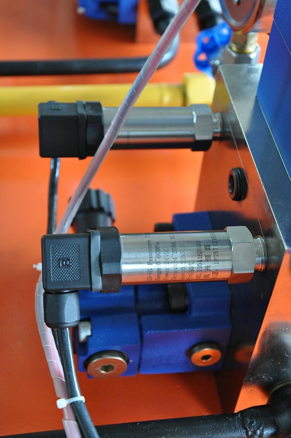 測試油缸部分的壓力變送器,可顯示油缸前進與后退的壓力